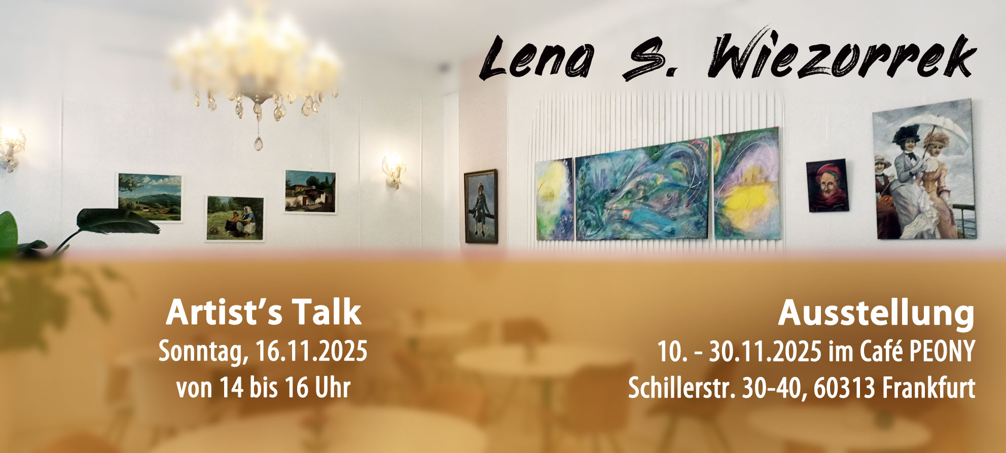 seien Sie herzlich zu meiner ersten kleinen Ausstellung in Frankfurt eingeladen! Im Café PEONY zeige ich eine Auswahl an Arbeiten, die in den letzten 30 Jahren entstanden sind. Sie enthält Portrait-Gemälde, Landschaften und auch eine abstrakte Trilogie, ebenso wie Portrait-Zeichnungen. Mit dieser Ausstellung möchte ich mich dem Frankfurter Publikum vorstellen und freue mich auf Ihr Feedback.
